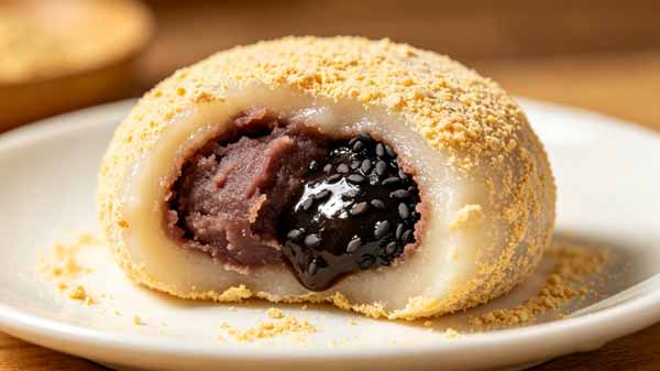 双酿团是上海糕团里最“有心机”的一种。它看起来就是个白胖的糯米团子,但咬开之后会发现两层馅——一层芝麻,一层豆沙。上海话里“酿”就是馅料的意思,“双酿”就是两种馅。糯米皮先裹一层豆沙,卷起来,再在外层裹一层芝麻粉,最后搓成团。也有做法是豆沙在里面,芝麻在外面,或者反过来。咬一口,先吃到芝麻的香和粗粝的颗粒感,再吃到豆沙的细腻甜润,两种甜味不打架,反而一个托着另一个。