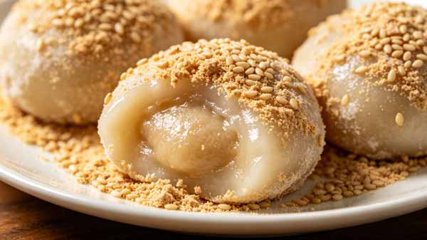 “擂沙”这个名字很有意思。“擂”是研磨的意思,黄豆粉以前是用石臼“擂”出来的。圆子在粉里一滚,像打滚一样,所以也叫“擂沙圆”。乔家栅的擂沙圆用的是黑洋酥馅,芝麻猪油的,黄豆粉里还加了点桂花糖。吃起来先是豆香扑鼻,接着糯米的软糯,最后黑洋酥在嘴里化开。老上海人吃擂沙圆要配一碗淡茶,因为黄豆粉容易噎着。