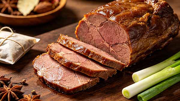 一道上好的酱牛肉,讲究的是“色、香、味、形”四美俱全。外观上,它应呈现出深沉透亮的酱红色,切面纹理清晰,筋肉相间如大理石花纹般迷人。闻之,酱香浓郁而不腻,香料的气息层层递进——八角的甘甜、桂皮的温润、花椒的微麻、草果的醇厚,与牛肉本身的香气完美融合。